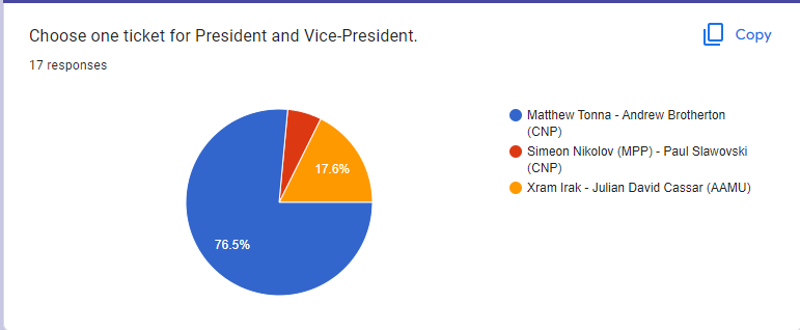 A mix of total joke and non-serious allegations of voter fraud were made by a presidential candidate Xram Irak and a non-citizen (image below). These allegations varied from simple "There is voter fraud", to "Matthew Tonna rigged the election". These were almost immediately debunked with an Election Report signed by the Premier of Melite Jayden Dagsa, outgoing President of Melite Andrew Brotherton (now Vice-President), incumbent Mayor-President of Fgura, Julian D. Cassar (Running mate VP for Xram Irak) and Sports Minister - Electoral Commissioner Simeon Nikolov, interestingly also a presidential candidate for the Melitian People's Party.